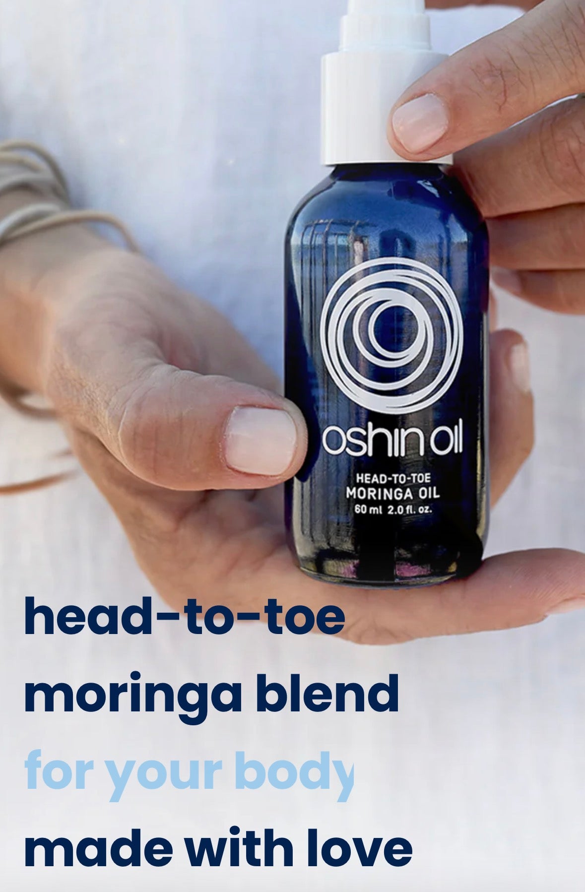 A 100% natural, fast-absorbing moringa oil blend that deeply nourishes face, hair, and body for all ages, genders and skin types.