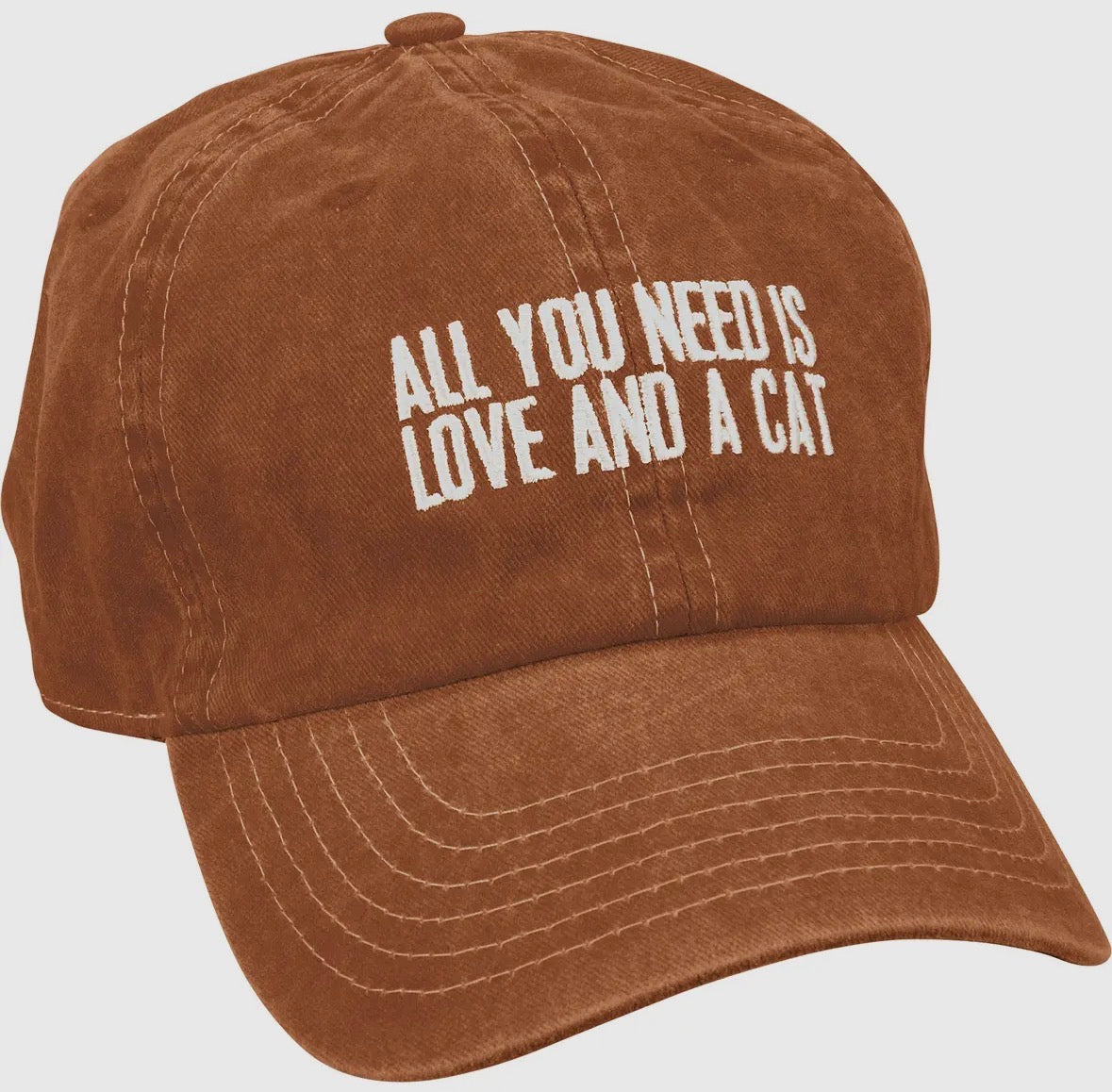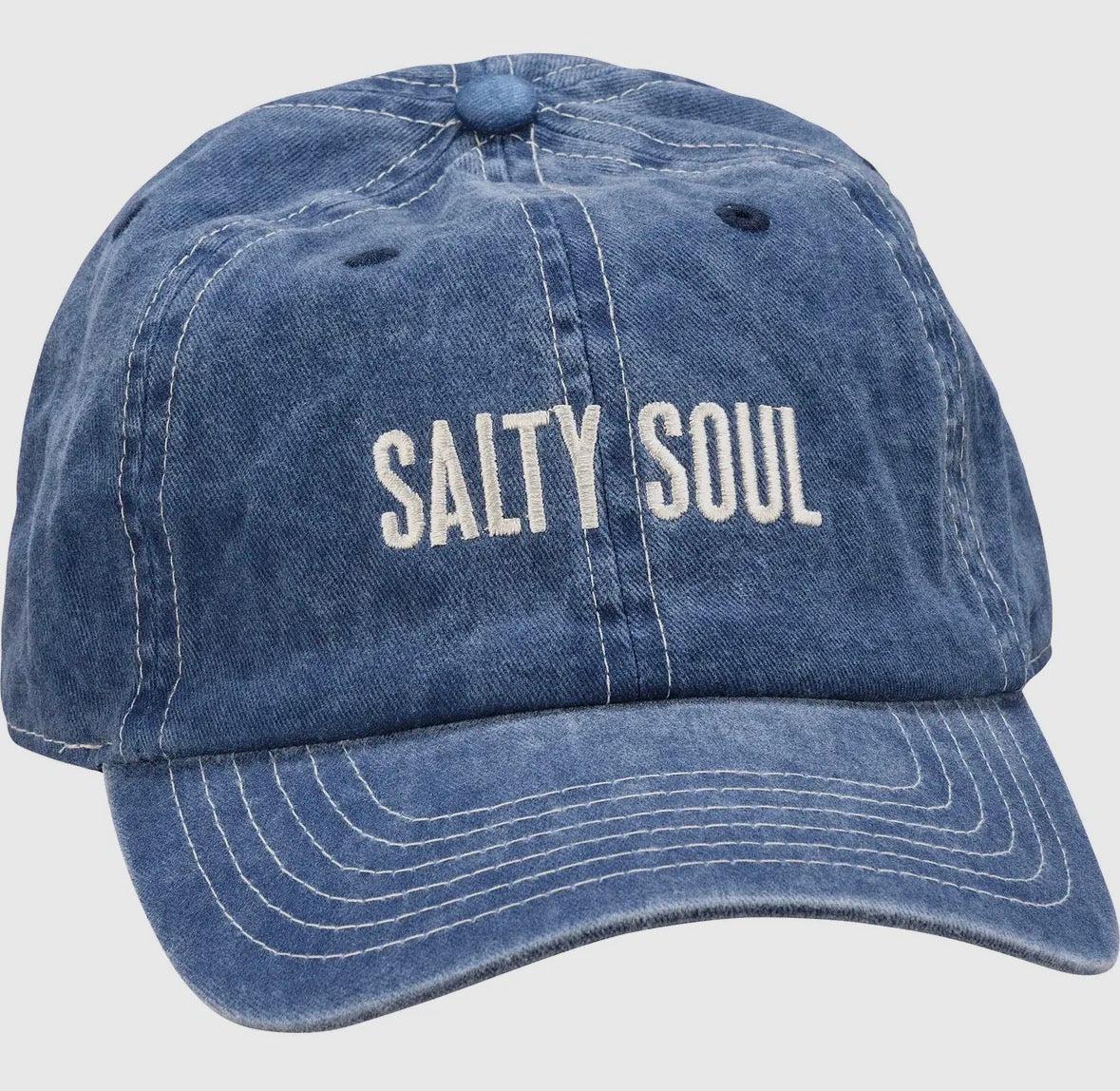A cotton baseball cap with an adjustable brass closure on the back from our Beach Collection. Features a box sign style embroidered sentiment. Our hats are one size fits most. Hand-wash only.